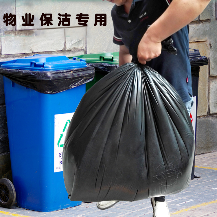 Flat mouth thick black large pull bag 95 * 110CM sanitation trash can property garbage bag buy more