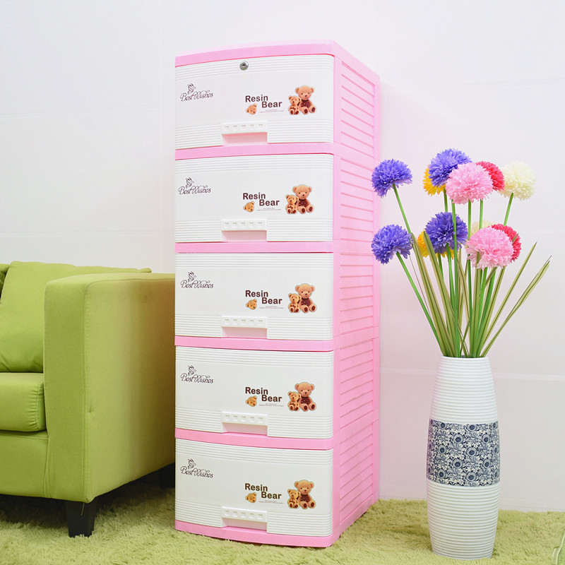 Children drawer STORAGE CABINET STORAGE BABY WARDROBE CARTOON PLASTIC BABY CLOTHING FINISHING CABINET FIVE BUCKET CABINETS