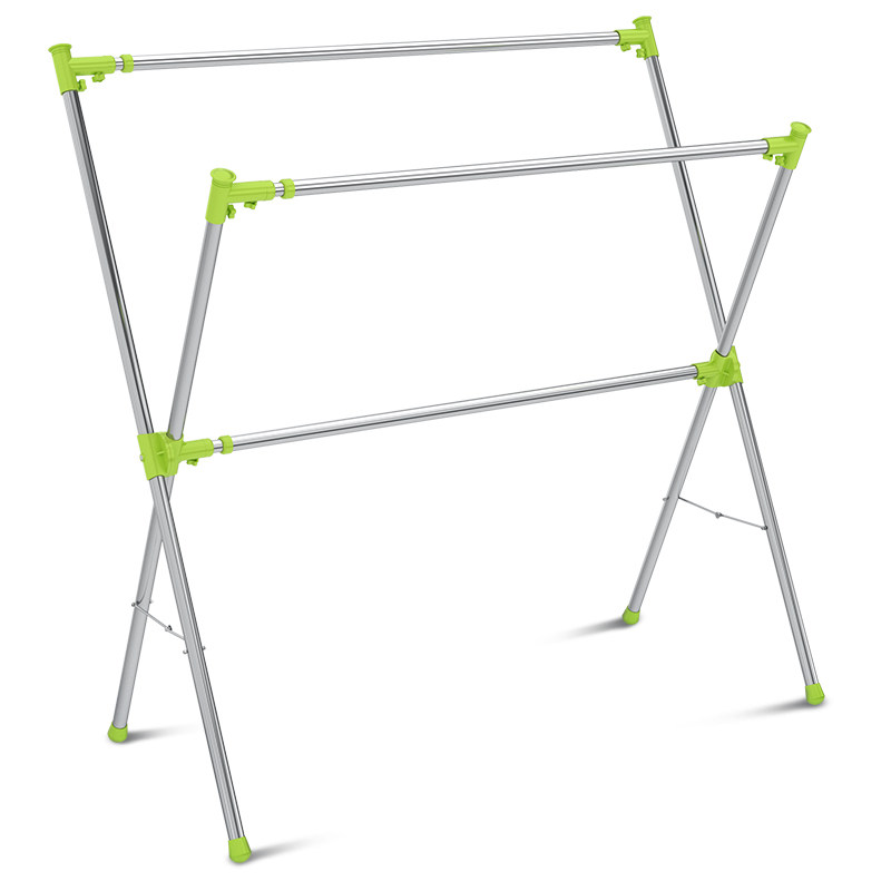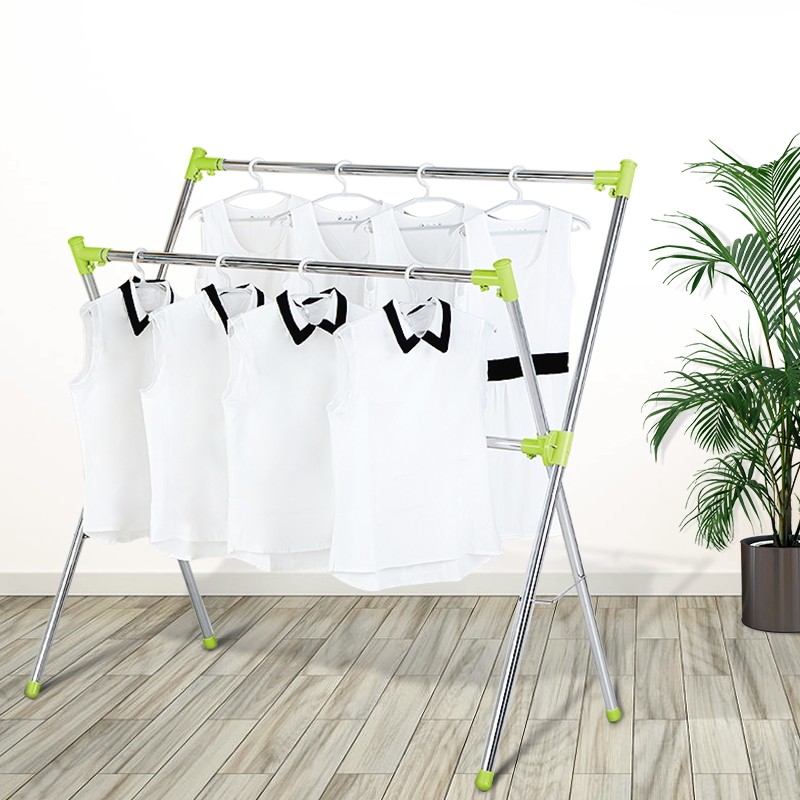 Good wife drying rack stainless steel drying rack floor folding telescopic double pole indoor balcony clothes drying Rod Outdoor