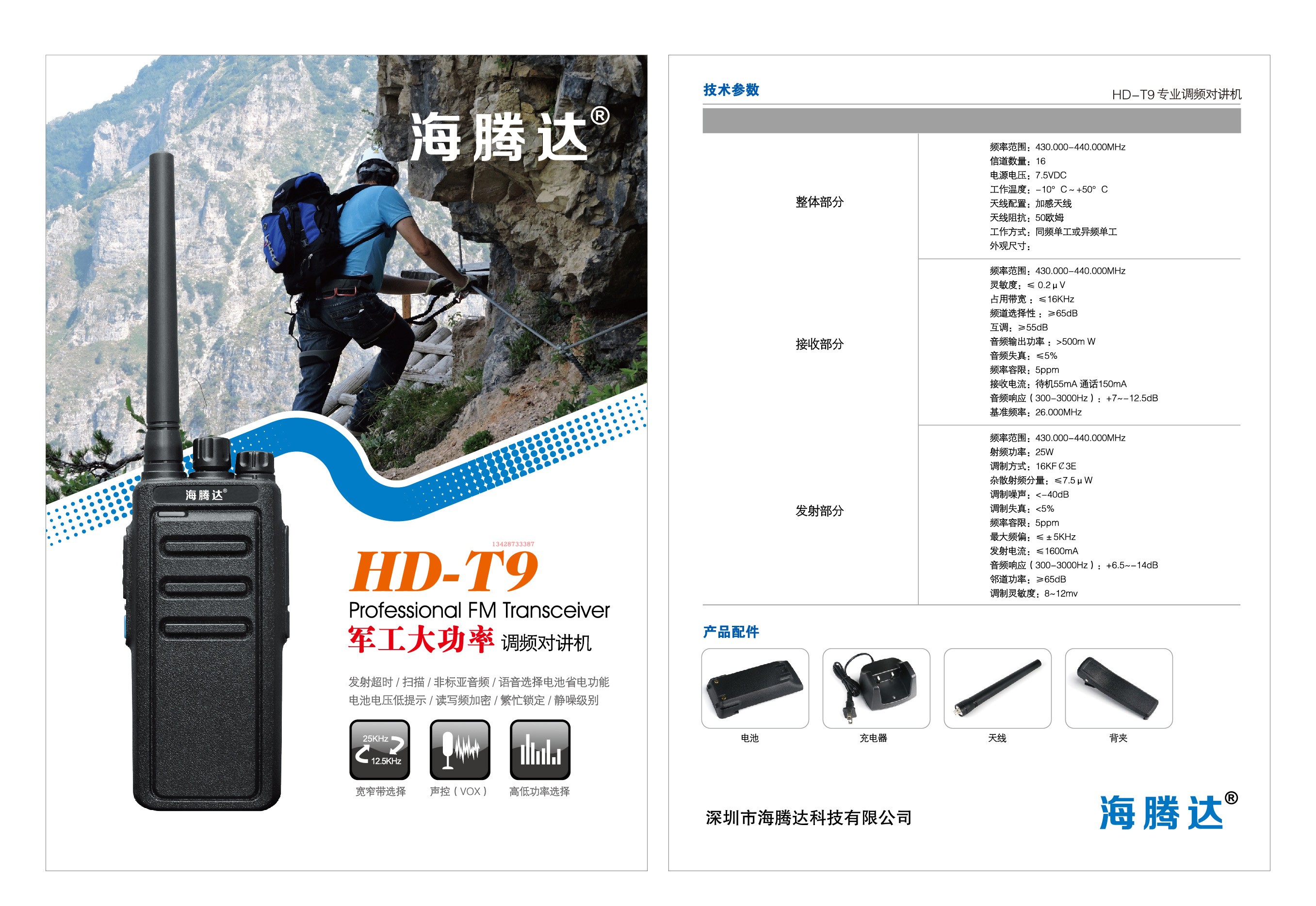 Haitengda T9 walkie-talkie HD-T9 high-power machine construction site durable model