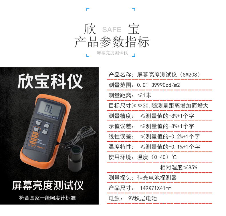 Shenzhen Xinbao screen brightness meter SM208 fluorescent screen transmission screen tester TV brightness tester detection