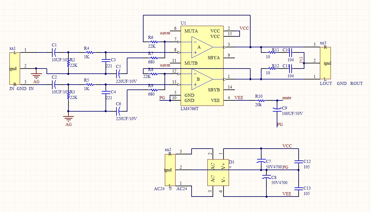 Dual channel LM4766 T power amplifier 50W*2 with rectifier filter capacitor
