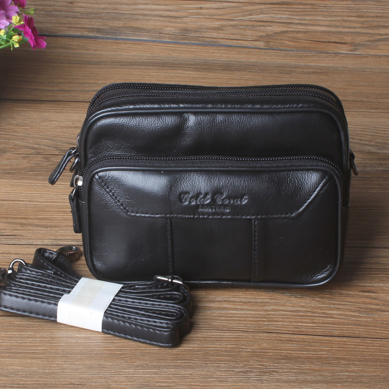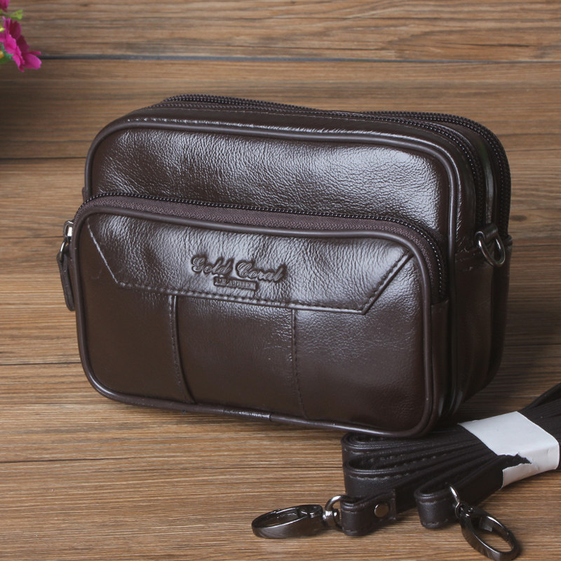 Gold Coral Head Layer Bull Leather Purse Leather Purse Leather Purse Men Sports Purse 5 5 Inch Mobile Phone Bag Single Shoulder Diagonal Satchel Bag