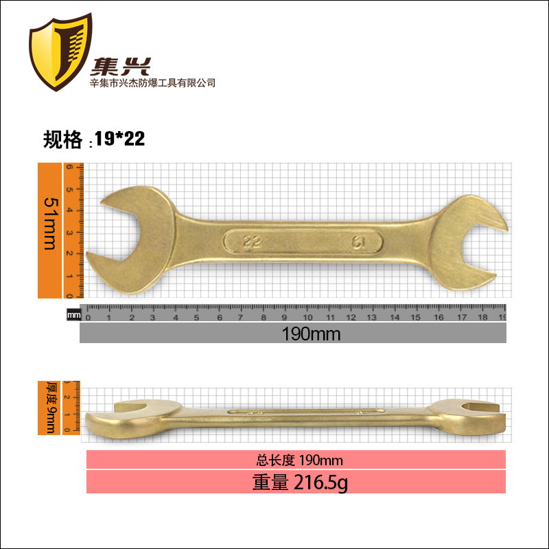 Explosion-proof double stay with double head dull wrench brass wrench explosion proof double head opening 30 * 34-75 * 85mm
