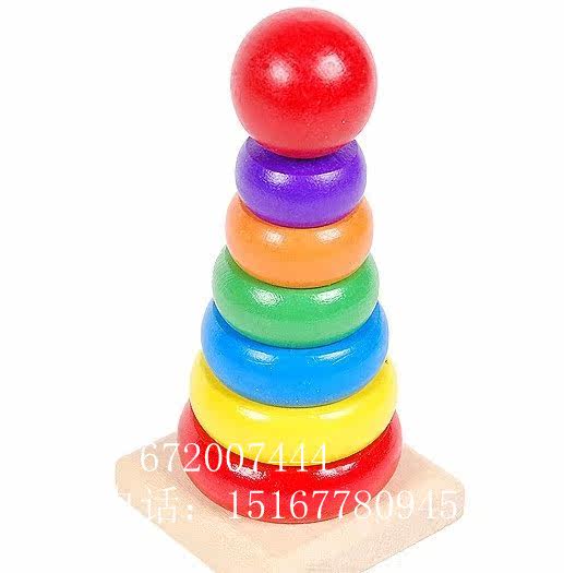 Parenting Early Teach Rainbow Tower Blocks Wooden Trellis Layers Laminated Infant Puzzle Toy Toddler Toddler Toys