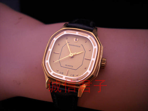 Inventory original Shanghai watch second factory gem flower glass mirror watch belt women's old-fashioned quartz watch classic retro