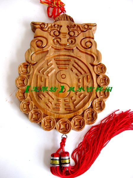 Peach Wood Engraving Tiger Head Tai Chi Yin Yin Yang Octave Mirror Home Decoration Pint Pendant Jogger's Flushing Door of the Flushing Door of the Entrance Door of the Peach Wood