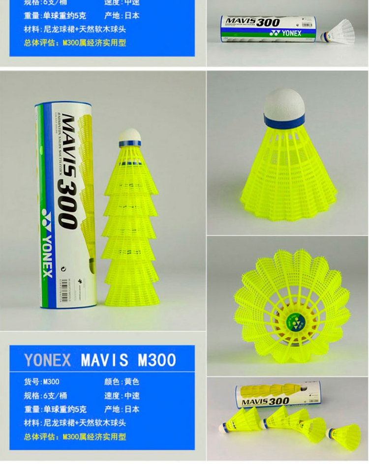 YONEX Yunix M-300 nylon ball resistant to natural cork badminton white 6 clothes