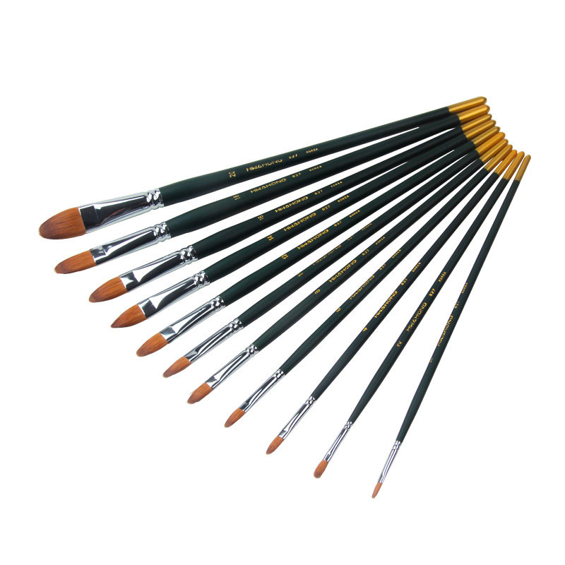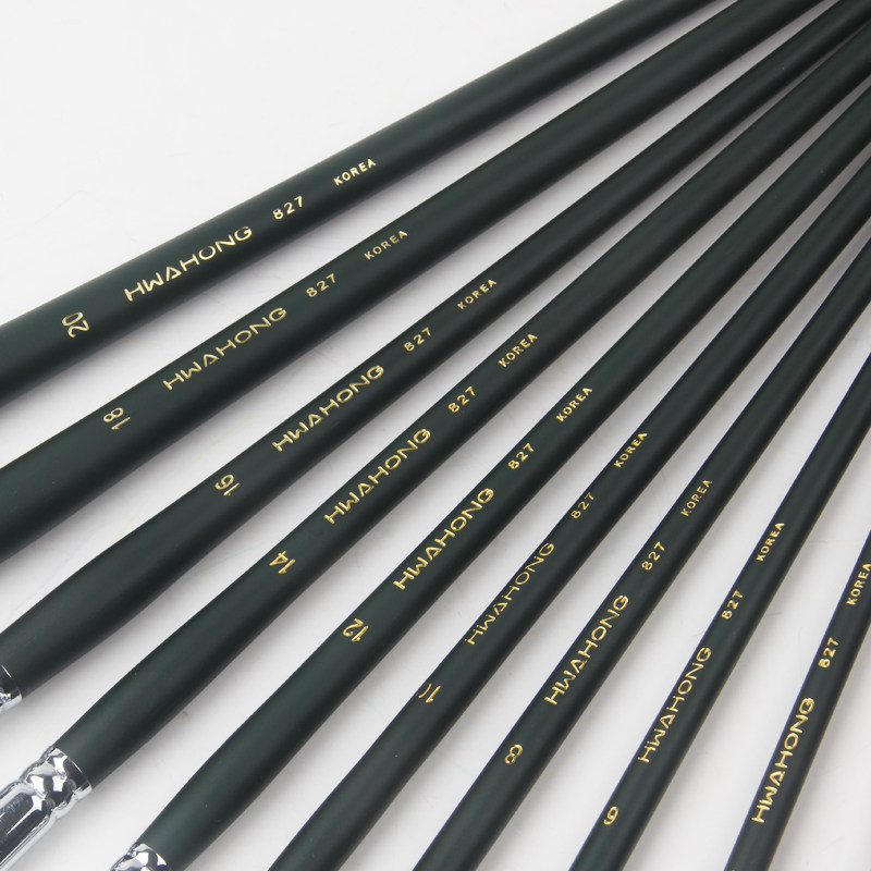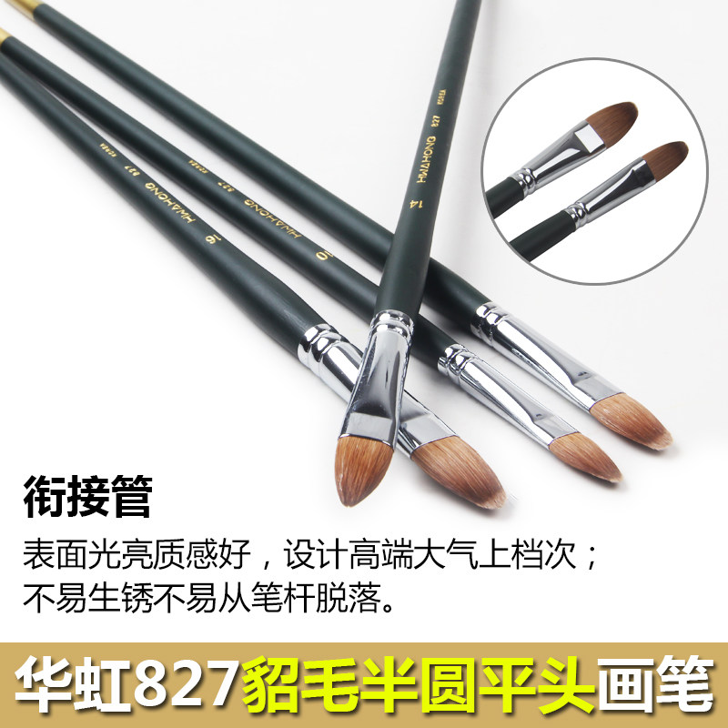 South Korea hwahong Huahong 827 long rod hazelnut semi-round flat head mink hair oil painting pen brush wolf brush