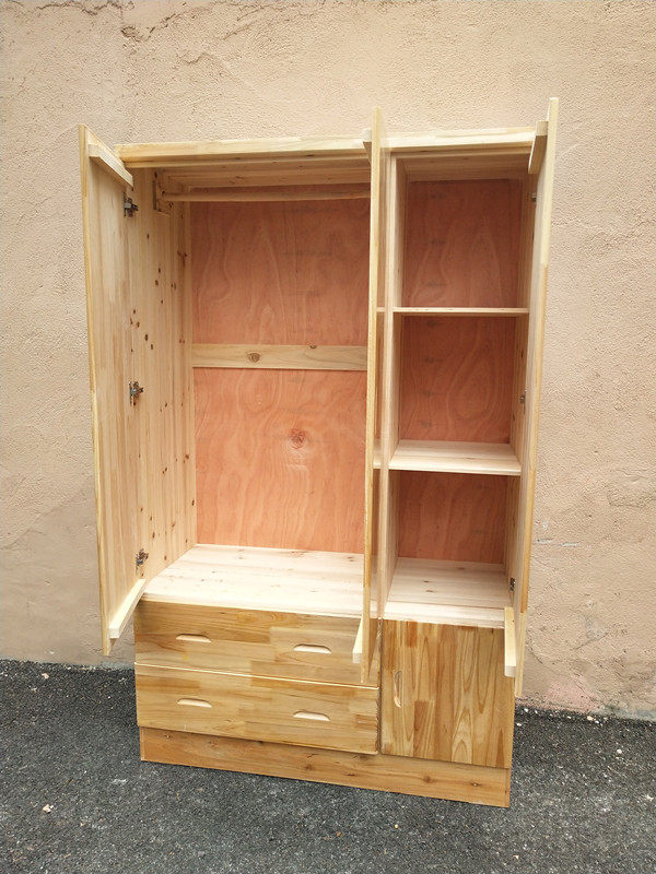 Three Doors Solid Wood Wardrobe Cedar Wood Storage Large Clothing Cabinet Hanging Closet Minima Modern Adult Children