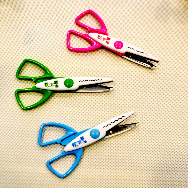 Blue wavy scissors set of three pieces of green whale sawtoothed scissors red right angle shaped scissors
