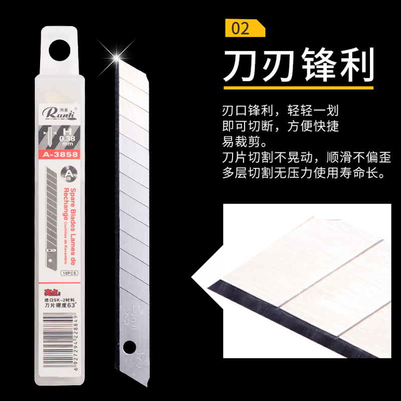 Runji carbon steel A version 3858 3830 high hardness 63° small utility blade 80mm*9*0 38mm