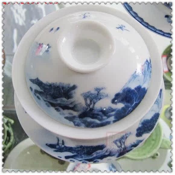 Supervalues Recommended Jingdezhen Ceramics Imitation Ancient Green Flower Decoration Landscape Kung Fu Cover Bowl Three Teatea Cups swing piece special price