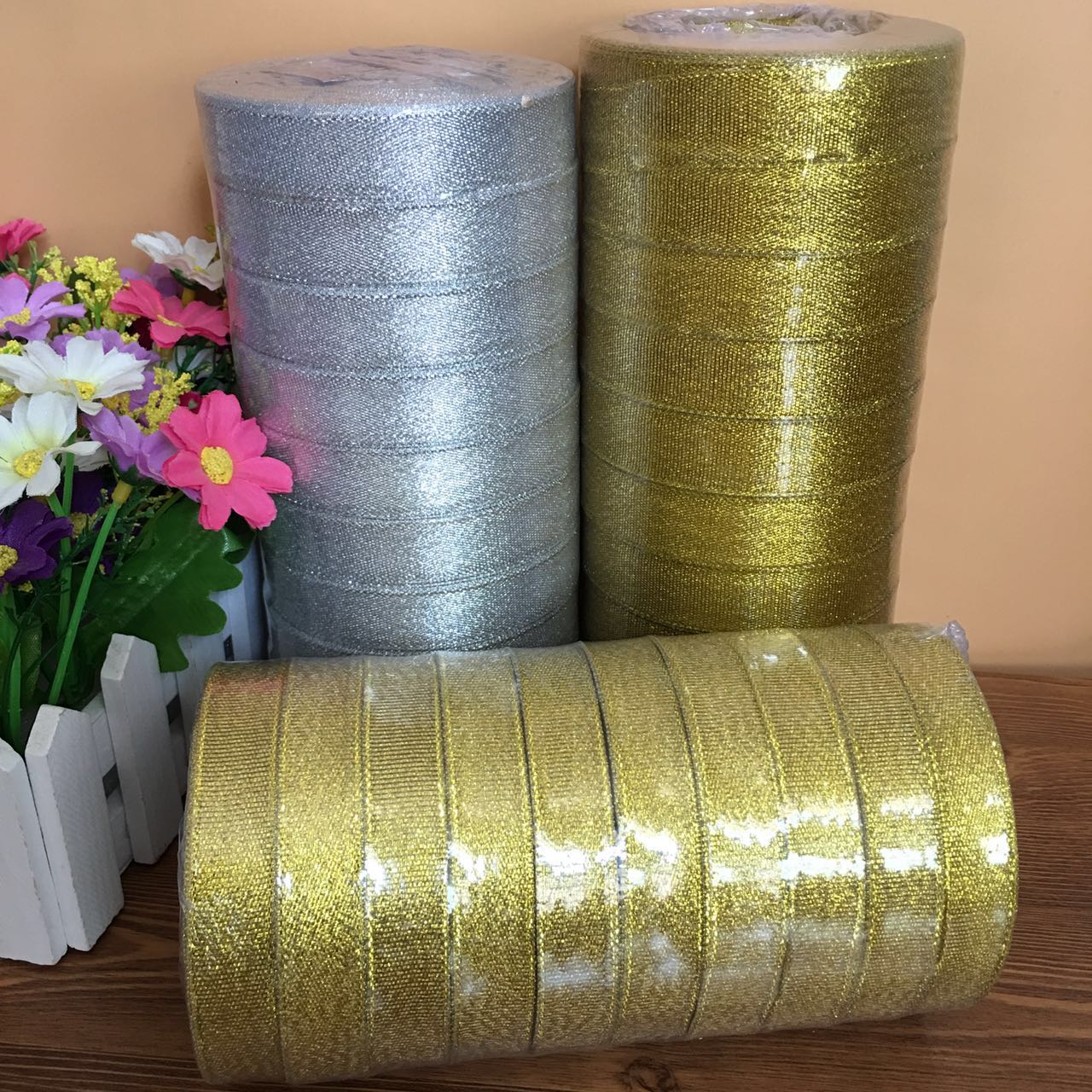 Gold and silver ribbon ribbon belt cake tie 25 yards full bucket 10