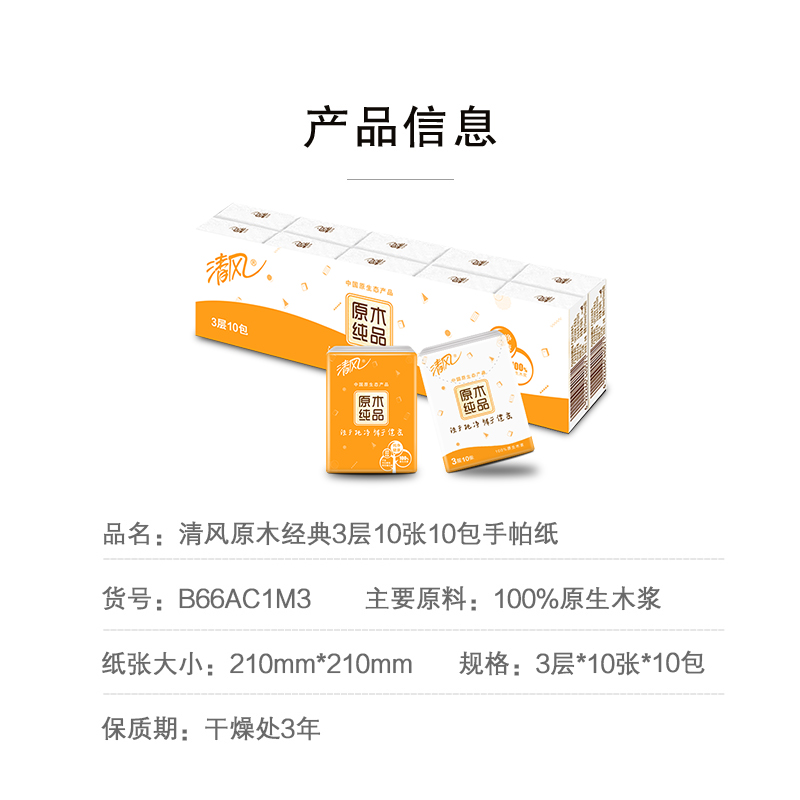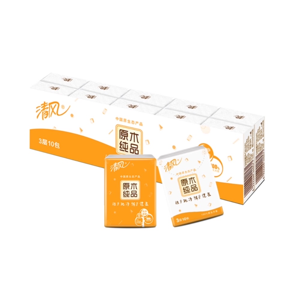 Breeze paper handkerchief Wood pure 3-layer 10 sheets 10 packs of face towels Wipe face packets napkins Portable carry-on