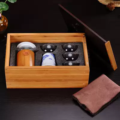 Xiangfu Portable travel Kung Fu tea set Car bamboo tea tray Outdoor travel bag Black tea glass tea maker