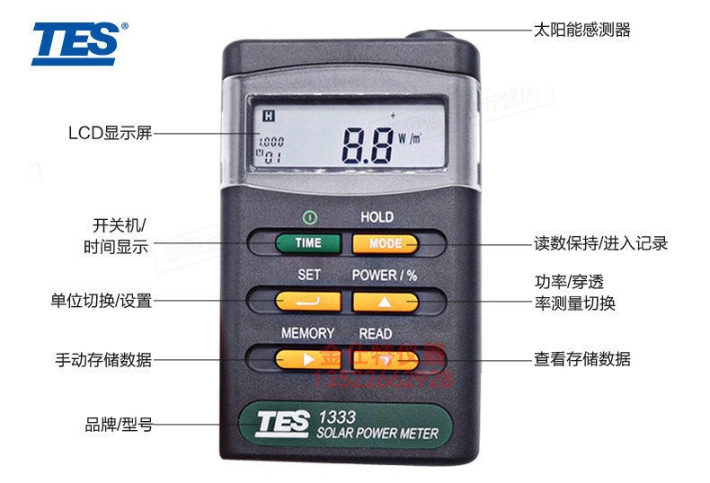 TES-1333 TES-1333R Solar Power Meter Recording Solar Transmittance Bolometer