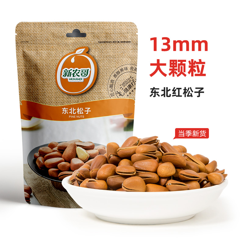 Xinnonggo northeastern pine nuts new bulk extra large particles nuts hand peel lipstick pine seeds 188g x 2 bags