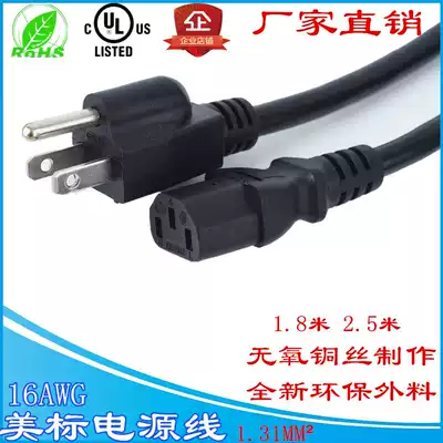UL certified American power cord Three-hole 3-core 0 824 2 08 square 14 16 18AWG American standard plug cable