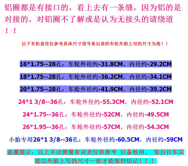 16*1.75 2.125 Front wheel 16*1.75 2.125 Rear wheel 18*1.75 2.125 Front wheel 18X1.75 2.125 Rear wheel 20*1.75 2.125 Front wheel 20*1.75 2.125 Rear wheel 24*1 3 8 Front wheel 24*1 3 8 Rear wheel 24*1.75 2.125 Front wheel 24*1.75 2.125 Rear wheel small tire special 26*1 3 8 Rear wheel small tire special 26*1 3 8 rear wheel