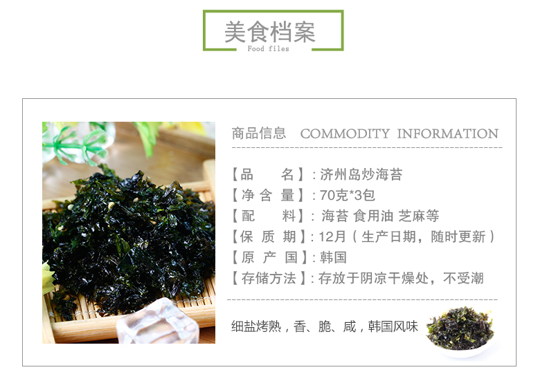 South Korea imported zero food Jeju Island fried seaweed bibimbap seaweed fried mixed seaweed seaweed rice 70g sesame auxiliary