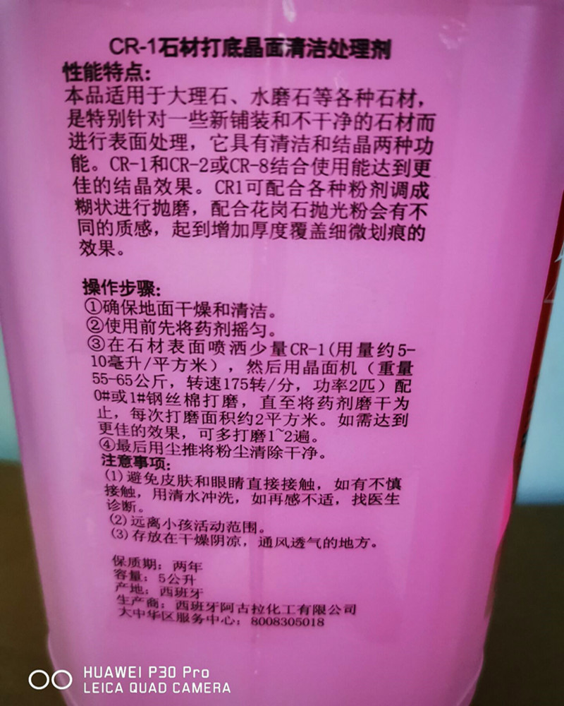 Spanish Imports Agura CR-1 Stone Beaten Bottom Crystal Face Cleaning Treatment Marble Maintenance Care Agent