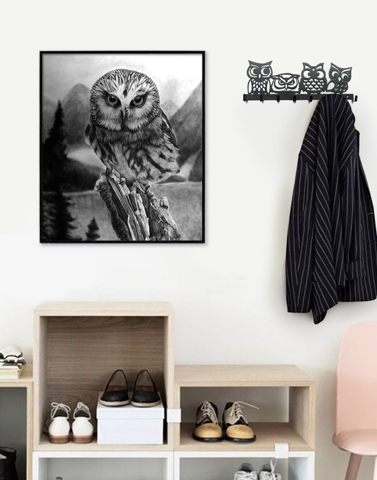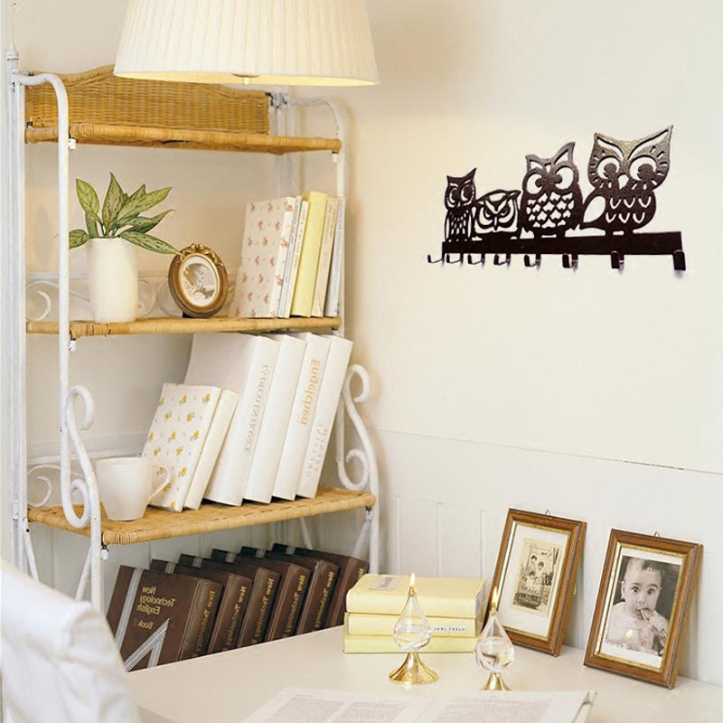 B020 original _ four owl creative hook iron art key hanging towel hanging black brown decorative wall-hanging