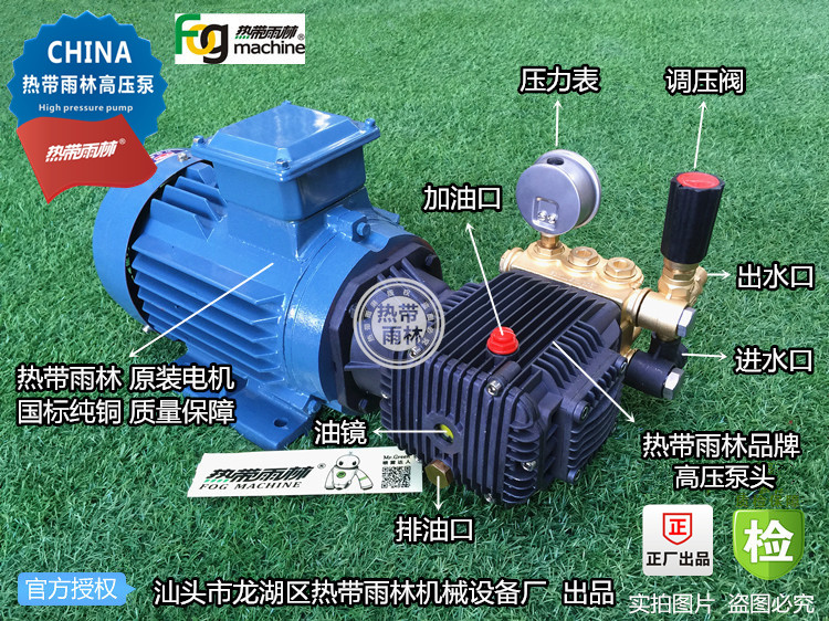 Direct-connected ultra-high pressure plunger water pump industrial spray cooling machine car washing machine tropical rain forest cold fog sen