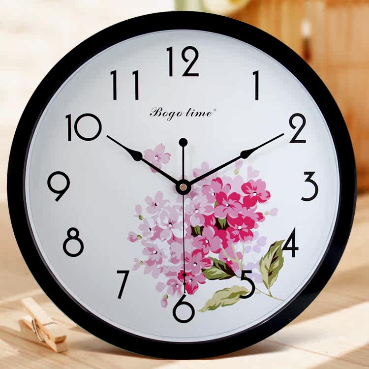 Round household mute metal frame clock watch Living room wall clock Pastoral Chinese style wall watch creative trend Quartz clock