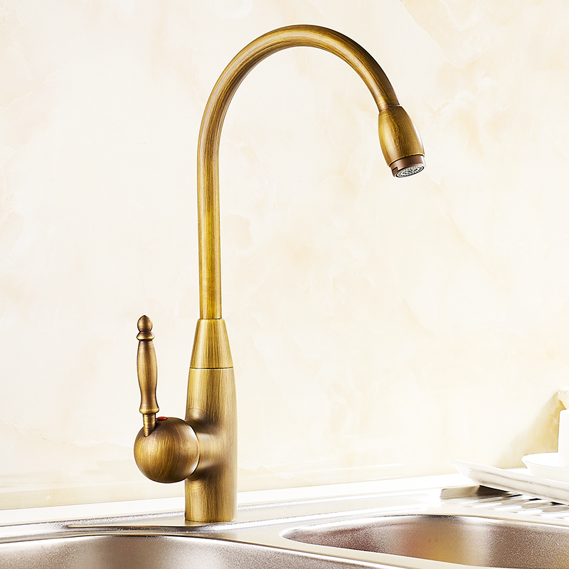All copper kitchen cold and hot water faucet Antique retro faucet Wash basin faucet Basin faucet can be rotated