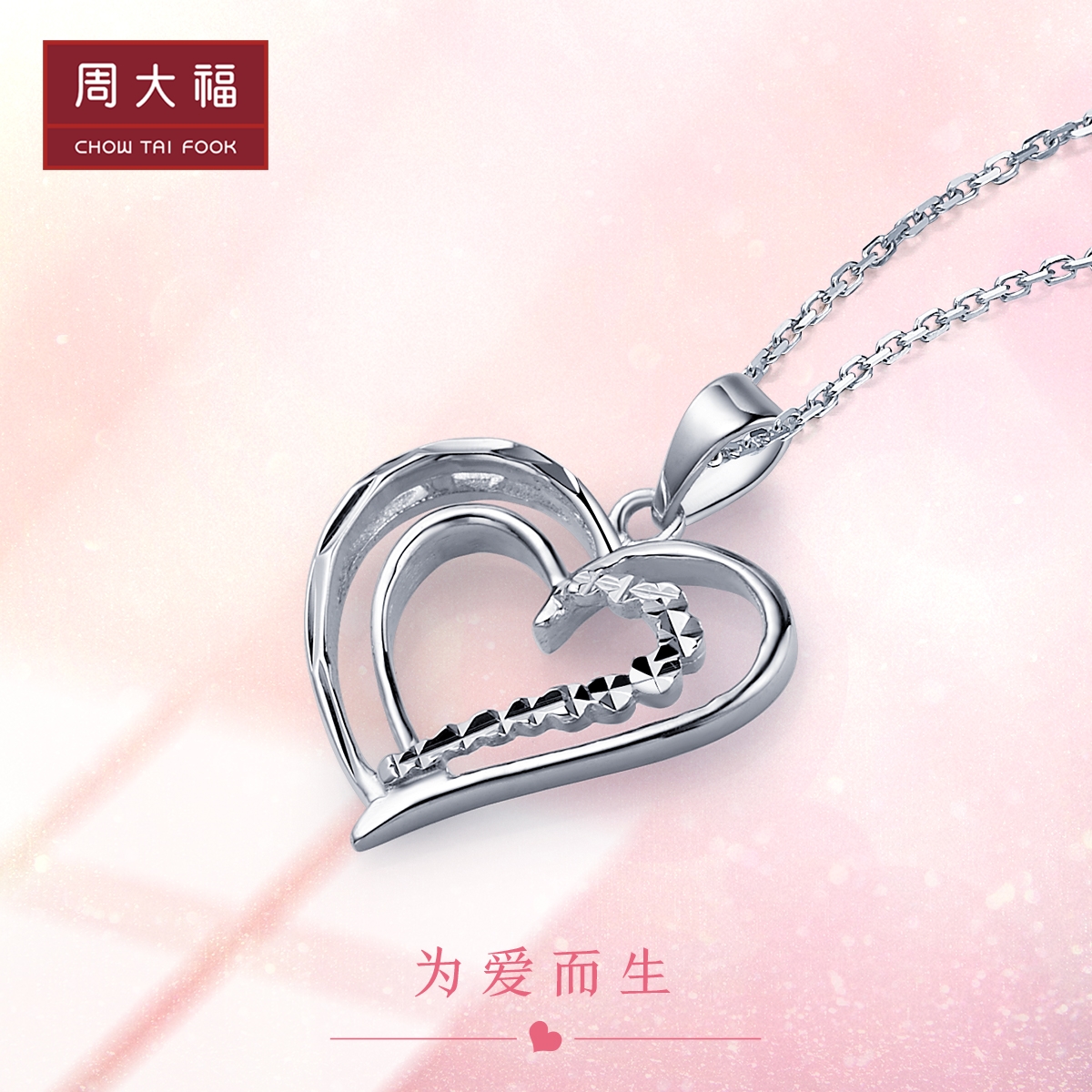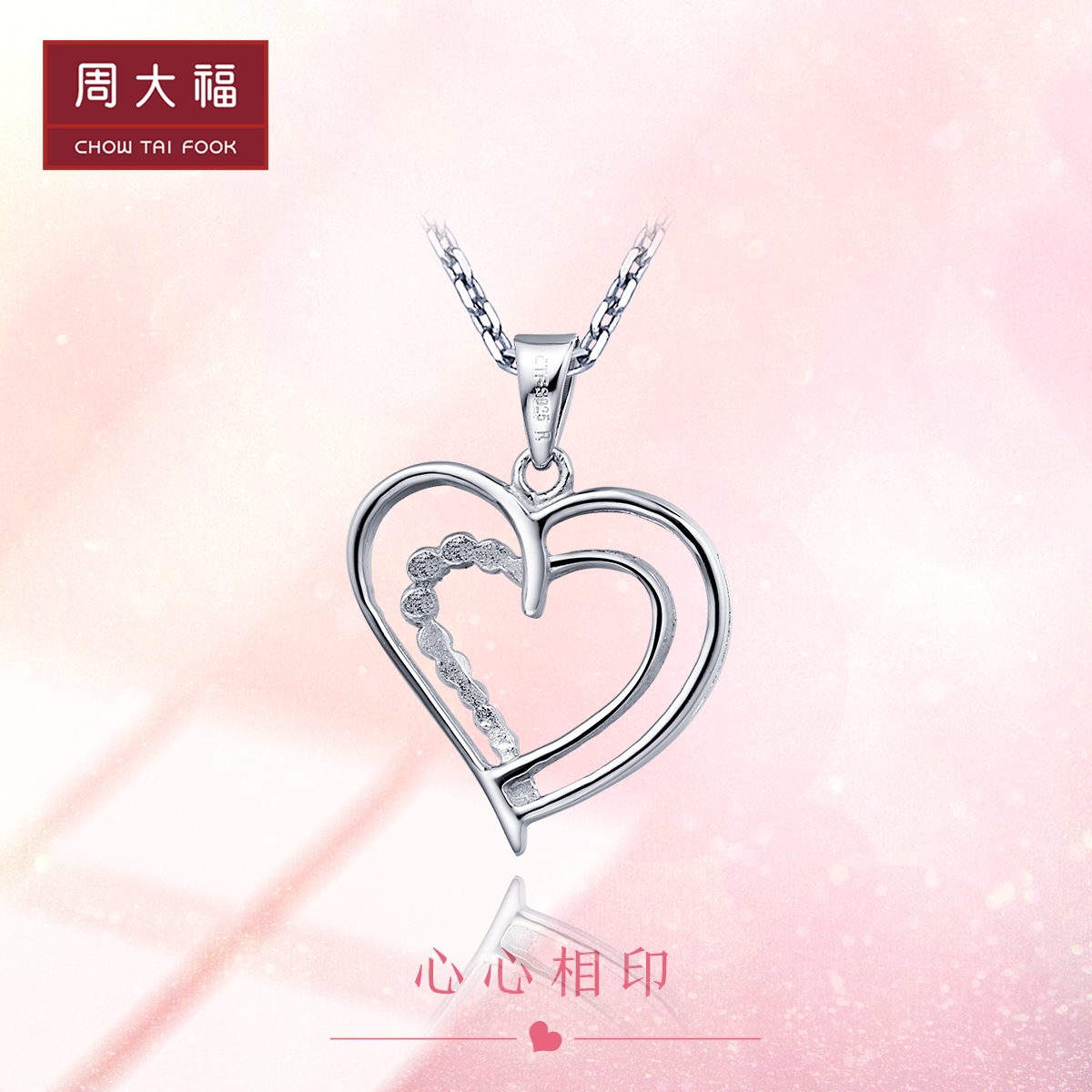 Chow Tai Fook Romantic Heart-to-Heart Print 925 Silver Necklace Pendant AB36722 Preferred