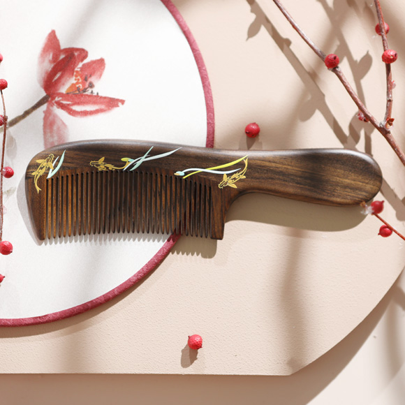Tan Carper Gift Box Free Koi Natural Wood Comb Portable Massage Comb Hair Care Hair Care Hair Care Hair Comb Birthday Gift