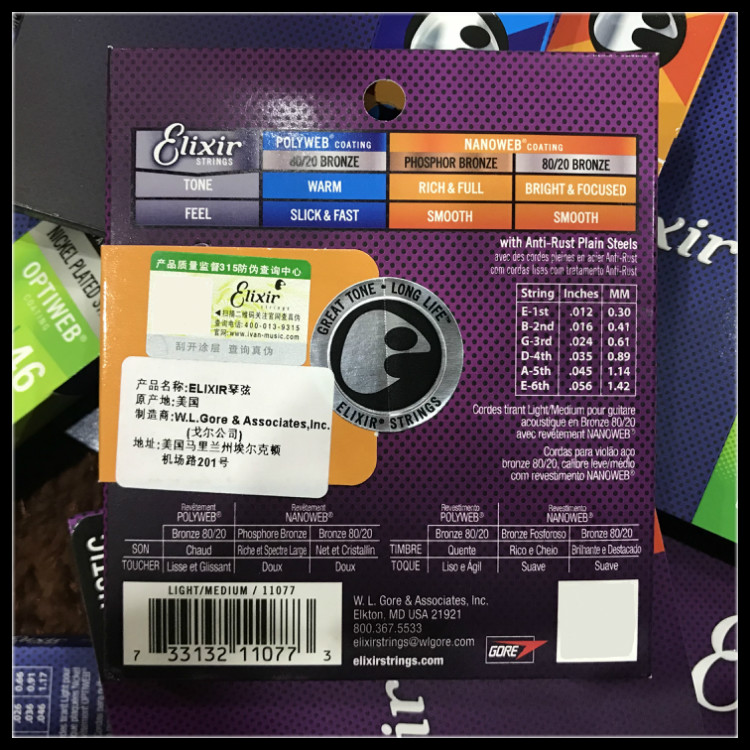 Ilix Elixir 80 20 Phosphorus Bronze Nanoweb 11027 11-52 Folk Guitar Strings