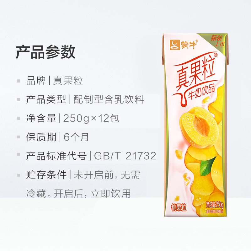 Mengniu Real Fruit Grain Milk Drink 250g * 12 boxed whole box of quality yellow peach Q Bomb Fruit Grain