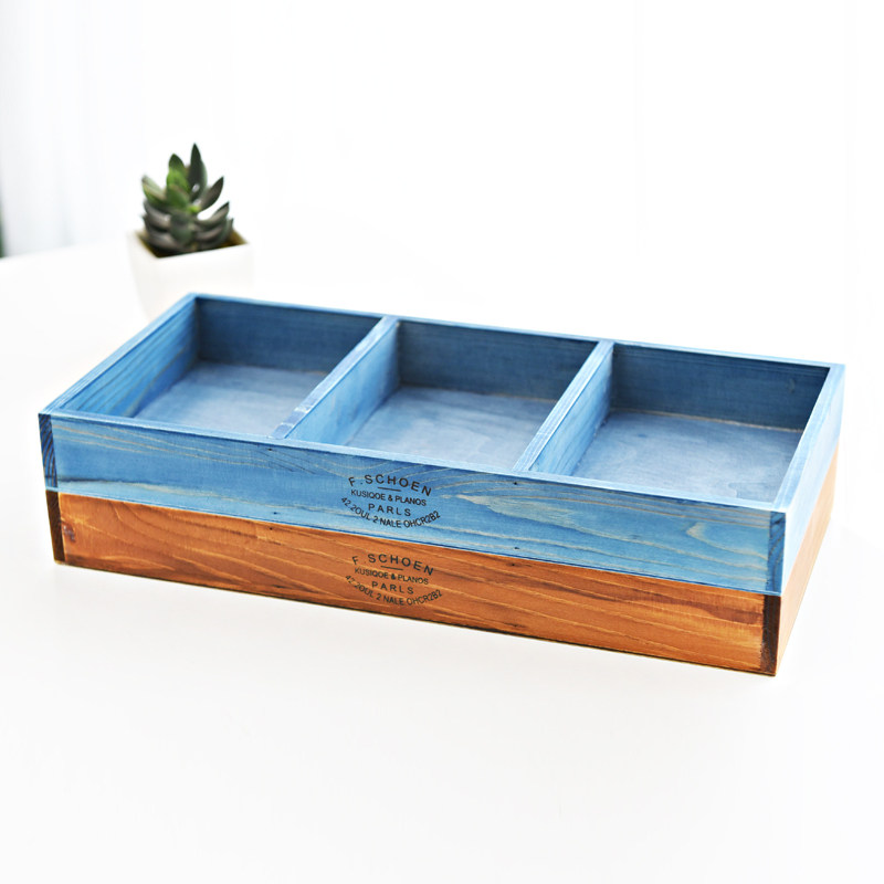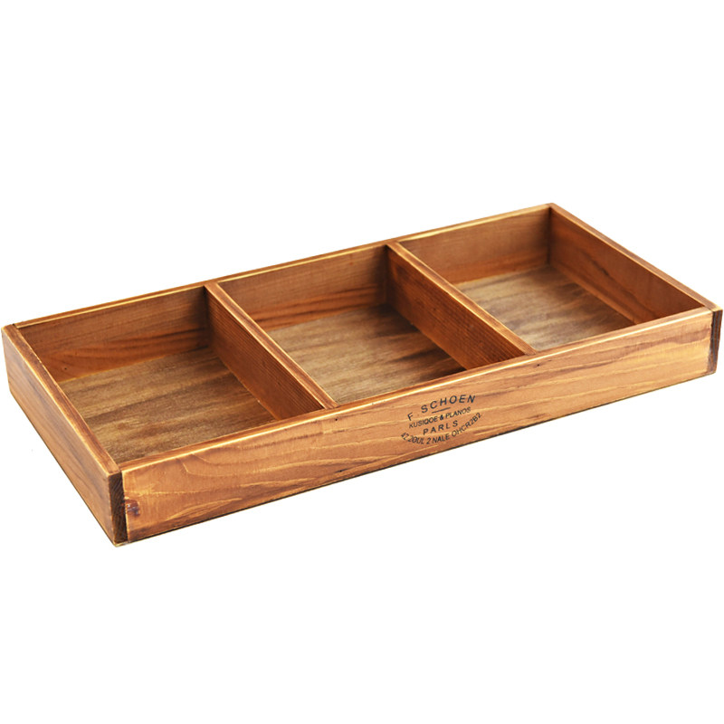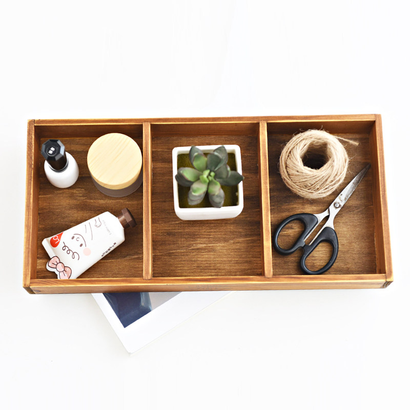 zakka handmade three-grid solid wood storage box jewelry tray classification finishing box desktop display box short wooden box