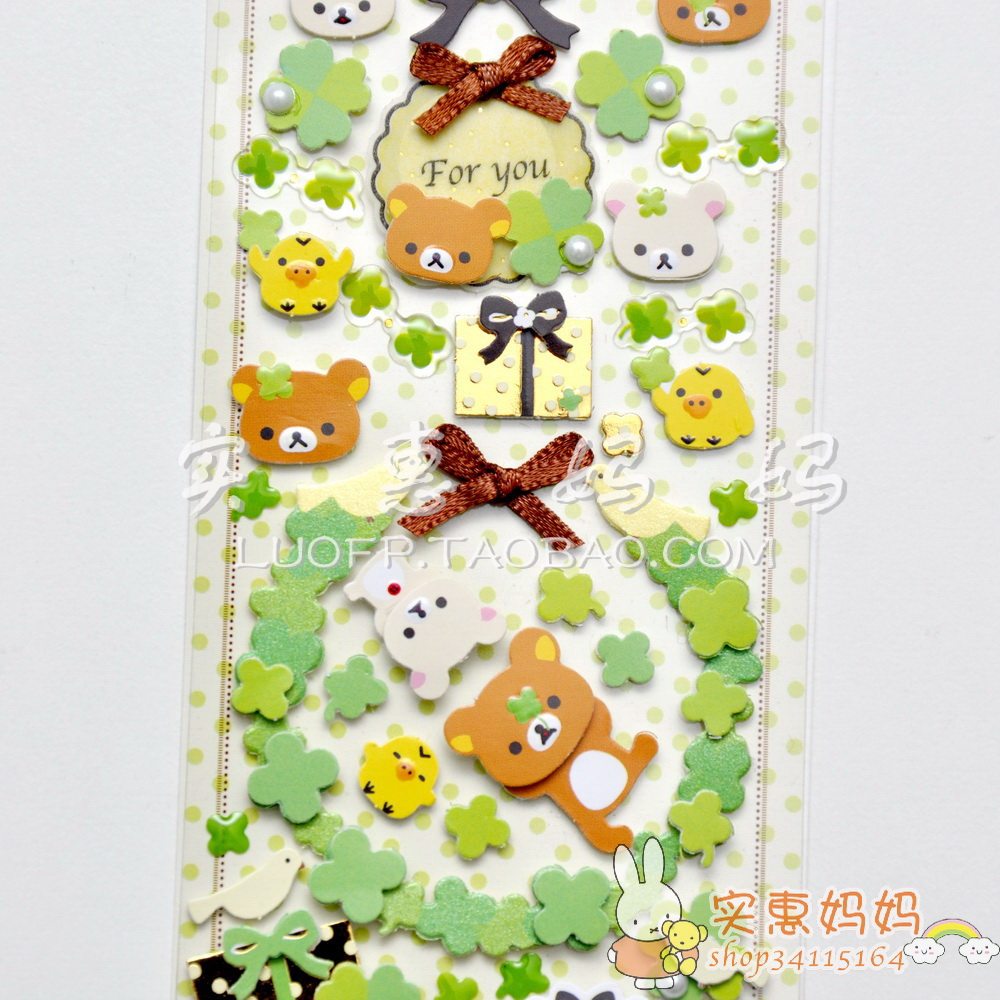 Shanghai Spot Japan Straight to Rilakkuma Easy Bear Four Leaf Grass Stereostyle Sticker Green
