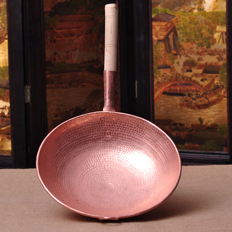 Diandu copper frying pan pure copper thickened handmade flat-bottomed gas gas single handle frying pan fire scoop beef copper pot