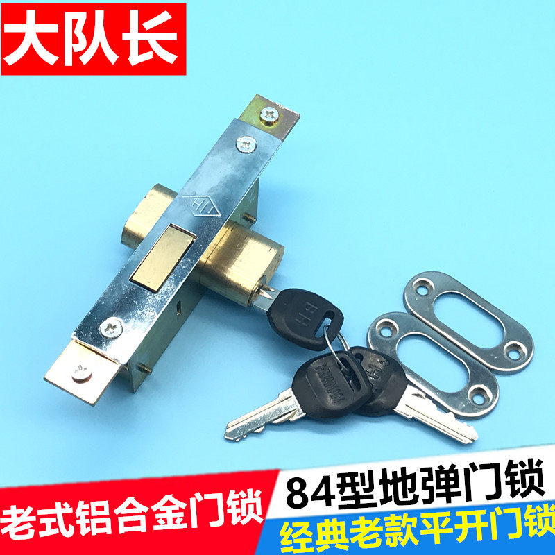 Old aluminum alloy flat lock ground spring door lock hook lock glass lock South China battalion chief brand LS-84 type door lock