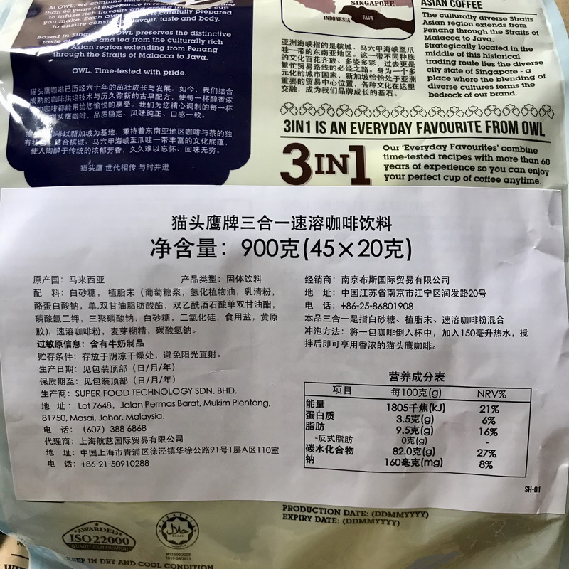 Fig. 1 3-in -1 instant 900g * 1 bag (20g * 45 pieces) 3-in -1 extra-thick instant 800g * 1 bag (20g * 40 pieces) with various varieties please see clearly against the baby picture