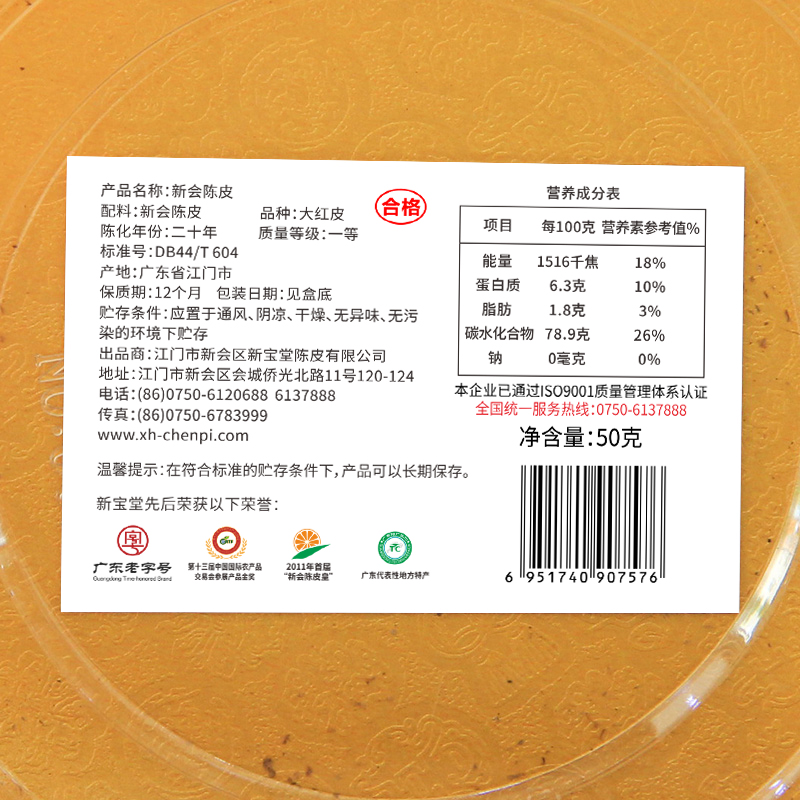 Xinbaotang Xinhui Tangerine Peel 20 years old Tangerine Peel Authentic 20 years old Xinhui Dried Tangerine Peel 50g