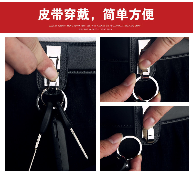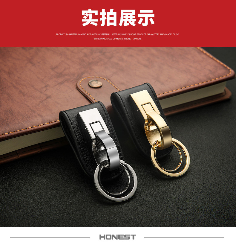 South Korea's new men's waist hanging genuine leather double ring strap key button New wave creative car key chain gift