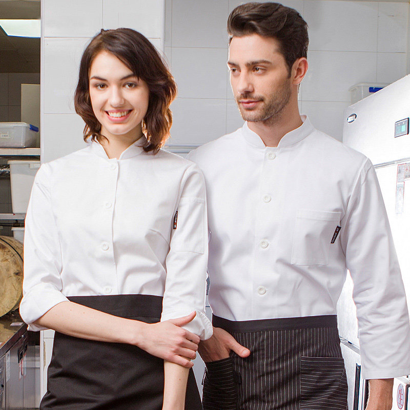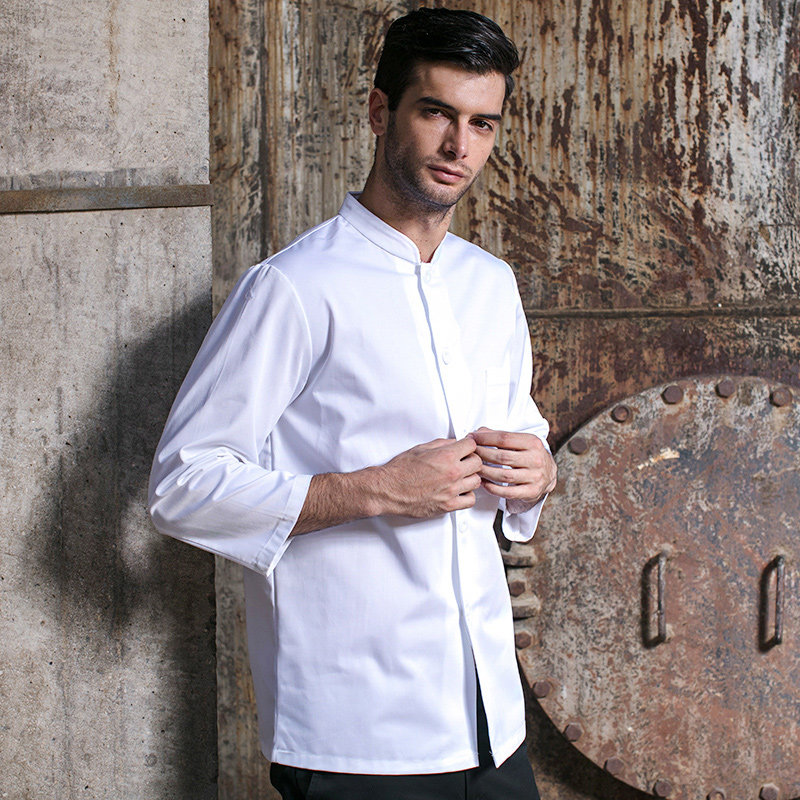 Xinjiang cotton chef suit Long sleeve single breasted Chinese pastry chef baking kitchen White large size back kitchen work suit men