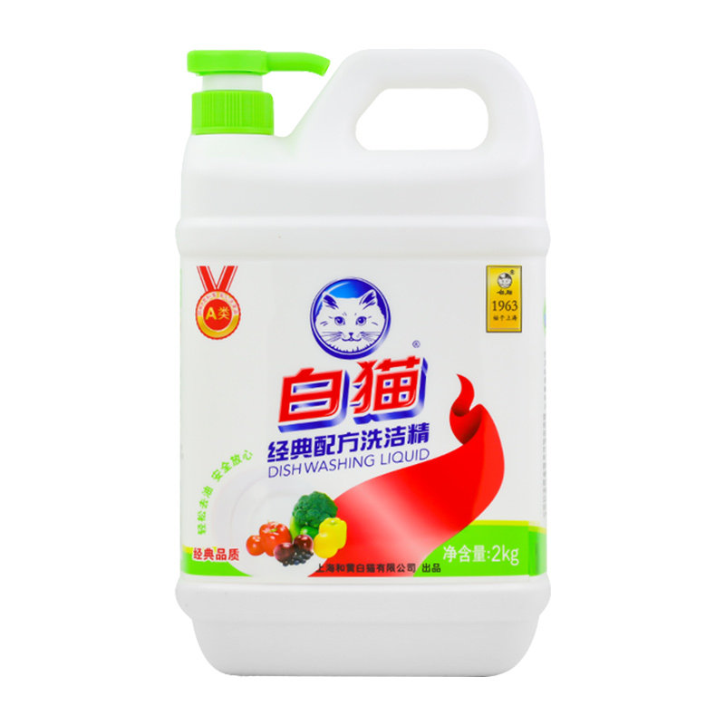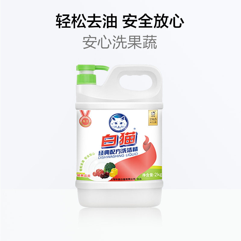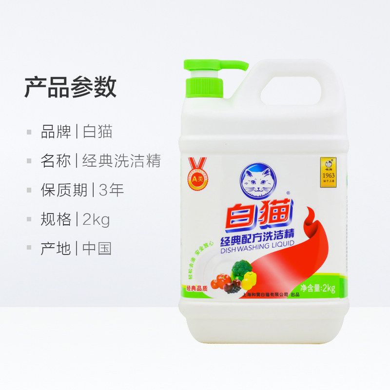 White cat classic formula dishwashing liquid kitchen household 2kg x 1 bottle household lemon fragrance to remove oil and easy to rinse