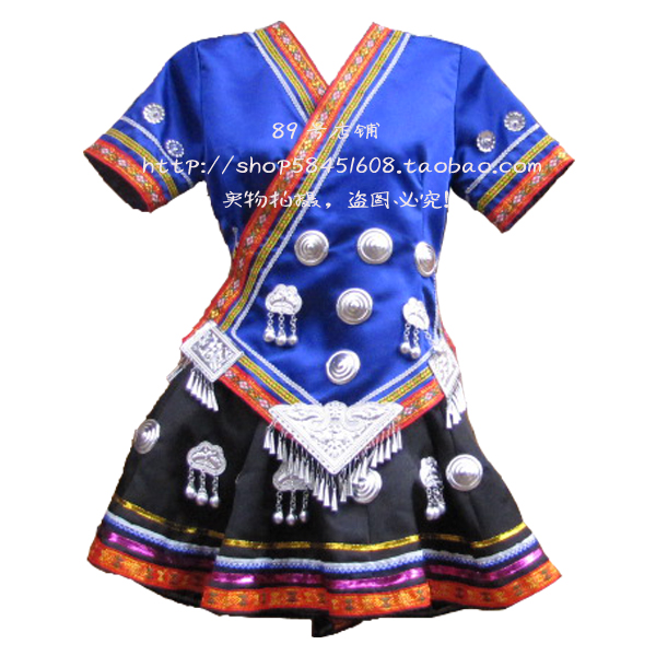 Miao Tujia and Dong ethnic dance costumes bridal dress rehearsal for the headwear hat silver collar blue dance genre