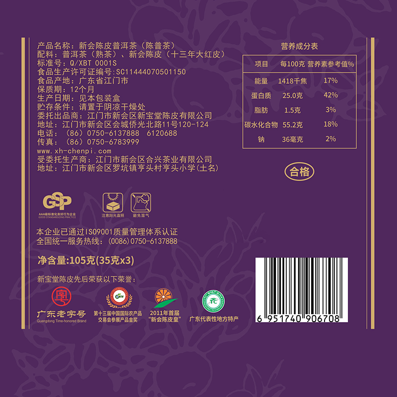 Xinbaotang Thirteen Years of Chenpi Pu'er Tea Tan Gift Box Xinyi Chenpi Pu'er Cooked Tea Gift Box 108g