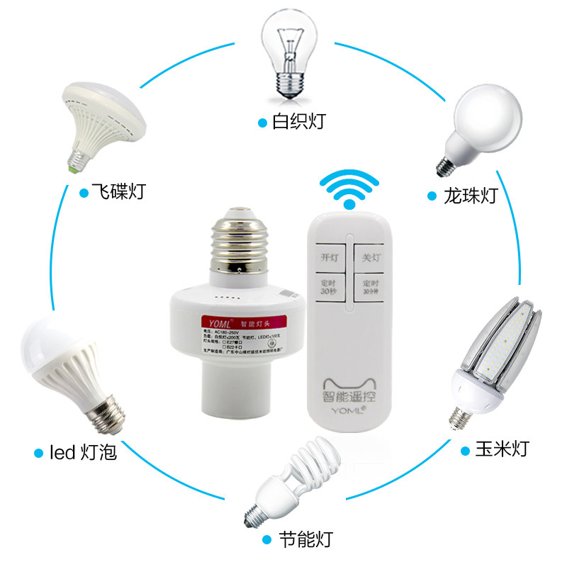 Wireless remote control lamp head lamp holder E27 screw port 220V single smart home switch power switch Home