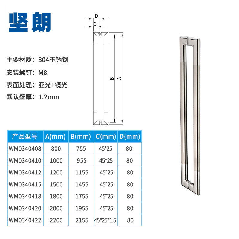 Tenang glass door handle 304 stainless steel large door handle modern KTV wooden door minimalist door handle WM03404