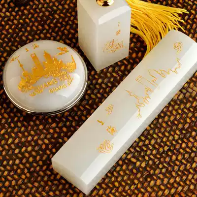 Special Mid-Autumn Festival Special Gift Natural White Jade Stone Seal Jade Calddy Box Paper Paper Shanghai World Expo three-piece gift box