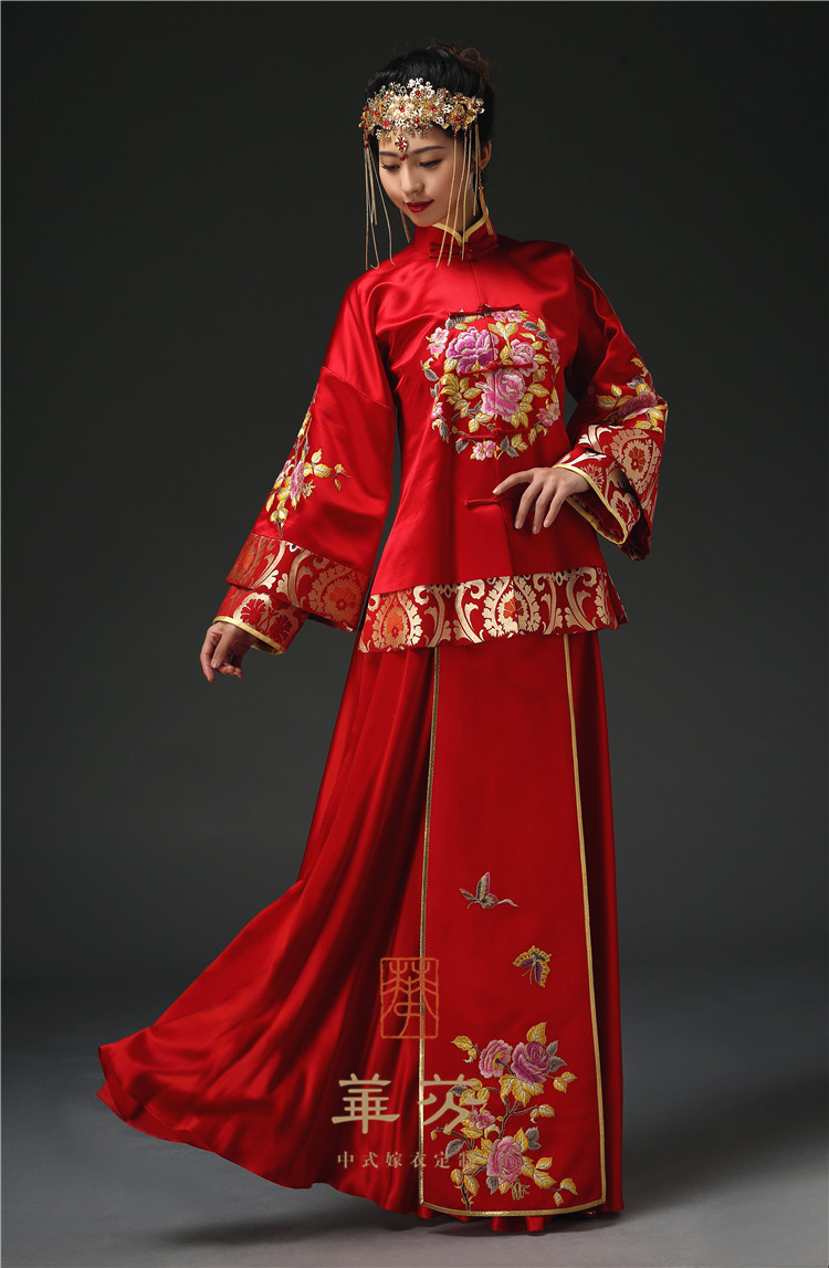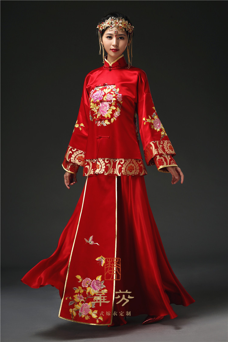 Chinese Wedding Suit Show and Bride Married handmade embroidered ancient dress Wedding Dress National Wedding Dress Qipao Wedding Custom