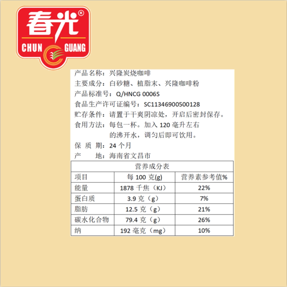 Xinglong charcoal roasted coffee 324g Hainan specialty authentic Spring Light instant bag independent bag drink three-in-one